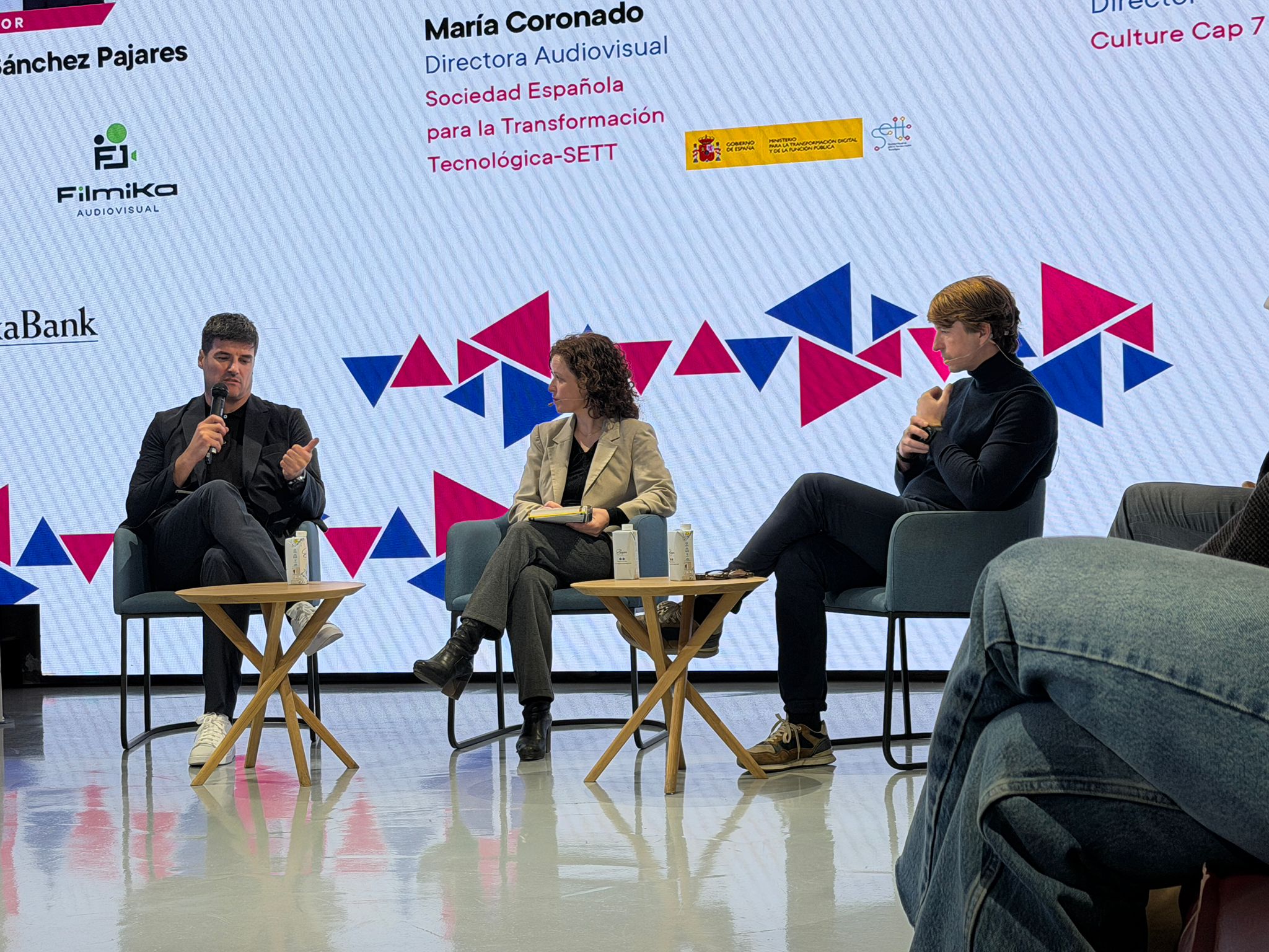 La SETT ha intervenido en dos mesas redondas dedicada a las inversiones de la Sociedad Española para la Transformación Tecnológica en el sector audiovisual. La primera, moderada por Andrés Sánchez Pajares, CEO de Filmika, se ha centrado en la inversión indirecta, en la que Coronado ha estado acompañada de Alfonso del Río, de Culture Cap, fondo de inversión audiovisual español que ha recibido el apoyo de la SETT con 44 millones de euros.